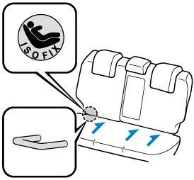 The markings above the ISOFIX/LATCH*1 lower anchors indicate the locations of the ISOFIX/LATCH*1 lower anchors for the attachment of a child-restraint system.