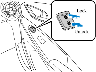 To lock all the doors and the liftgate from an open front door, press the lock side of the door lock switch and then close the door.