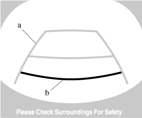 The guide lines on the screen are fixed lines. They are not synced to the driver's turning of the steering wheel. Always be careful and check the area to the vehicle's rear and the surrounding area directly with your eyes while backing up.