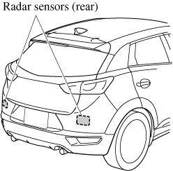 Vehicles are shipped with the direction of the radar sensors (rear) adjusted for each vehicle to a loaded vehicle condition so that the radar sensors (rear) detect approaching vehicles correctly. If the direction of the radar sensors (rear) has deviated for some reason, have the vehicle inspected at an Authorized Mazda Dealer.