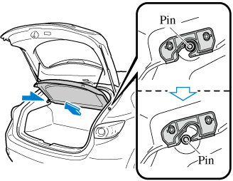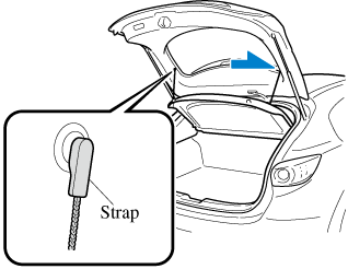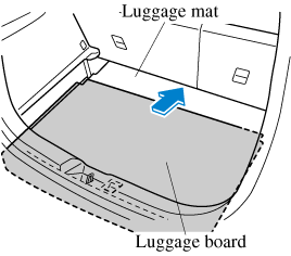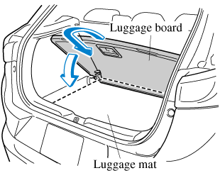 Insert the luggage compartment cover from the top of the luggage compartment opening with the cloth side of the cover facing outward, and slide it between the flat tire and the inside perimeter of the luggage compartment opening.