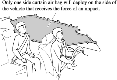 Greater than moderate impact to one side of the vehicle will cause the curtain air bag on that side only to inflate.