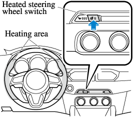Press the switch to turn on the heated steering wheel. The heated steering wheel operates for about 30 minutes and then turns off automatically.