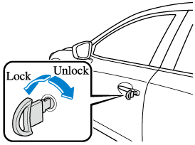 Turn the auxiliary key toward the front to lock, toward the back to unlock.
