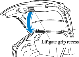 Lower the liftgate slowly using the liftgate grip recess, then push the liftgate closed using both hands.