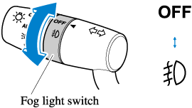 The fog lights can be turned on with the ignition switched ON and the headlights turned on.