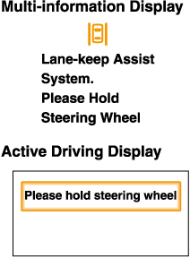 If the driver takes his or her hands off the steering wheel (not holding the steering wheel), the warning sound is activated and an alert is indicated in the multi-information display or the active driving display.