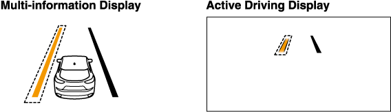 If the system determines that the vehicle may deviate from its lane, the color of the lane line on the side being detected by the system changes from white to amber, and flashes.