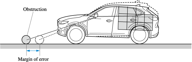 If there is a steep up or down grade in the road at the front or rear of the vehicle, obstructions picked up by the camera can appear farther or closer than the actual distance from the vehicle.