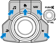 : Displays the Favorites screen. Long-press to store particular items in Favorites. (Radio, phonebook and destination of the navigation system can be programmed.)