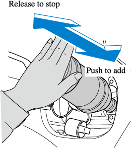 • Do not overfill the DEF. If the DEF is overfilled, it may freeze during cold temperatures (–11°C (12 °F) or less). When urea freezes, it expands and could cause tank breakage. Always use a bottle with an auto-stop function and stop adding fluid when the auto-stop function operates.