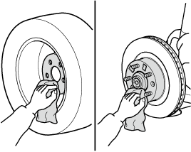Remove dirt and grime from the mounting surfaces of the wheel and hub, including the hub bolts, with a cloth.
