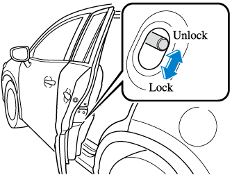 If you slide the child safety lock to the lock position before closing that door, the door cannot be opened from the inside. The door can only be opened by pulling the outside handle.