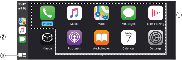 is displayed on the Mazda Connect home screen while Apple CarPlay™ is connected or press and hold the Home button.