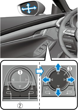 Press the select switch for the outside mirror to be adjusted to turn on the indicator light.