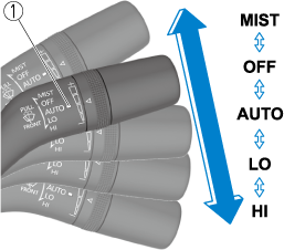 Switching the auto-wiper lever from the OFF to the AUTO position while driving activates the windshield wipers once, after which they operate according to the rainfall amount.
