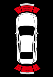 Rear ultrasonic sensor: Within approx. 35.0 cm (13.7 in) Rear corner ultrasonic sensor/Rear side ultrasonic sensor: Within approx. 25 cm (9.8 in) |