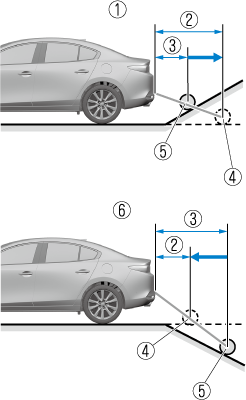 If the vehicle is on a slope, obstructions taken by the camera can appear farther or closer than the actual distance from the vehicle.