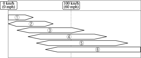 For each gear position while in the manual mode, the speed limit is set as follows: When the selector lever is operated within the range of the speed limit, the gear is shifted.