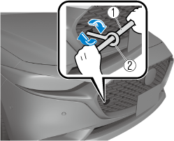 Wrap a flathead screwdriver or similar tool with a soft cloth to prevent damage to a painted bumper, and open the cap located on the front or rear bumper.