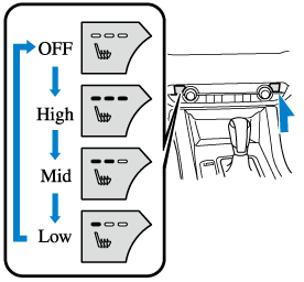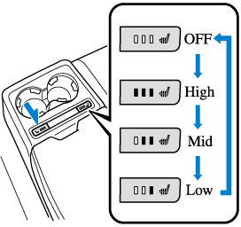 Press the seat warmer switch while the ignition is switched ON to operate the seat warmer. The indicator lights turn on to indicate that the seat warmer is operating. The mode changes as follows each time the seat warmer switch is pressed.