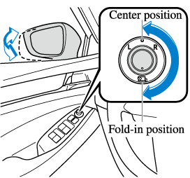 If the outside mirrors do not fold in and out automatically, remove any ice or snow, and then operate the outside mirror switch to fold the outside mirrors in or out.
