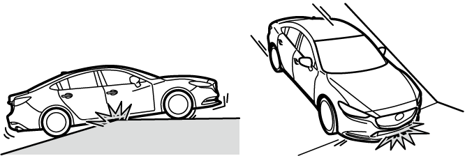 Use care not to damage the vehicle's underbody, bumpers or muffler(s) when driving under the following conditions: