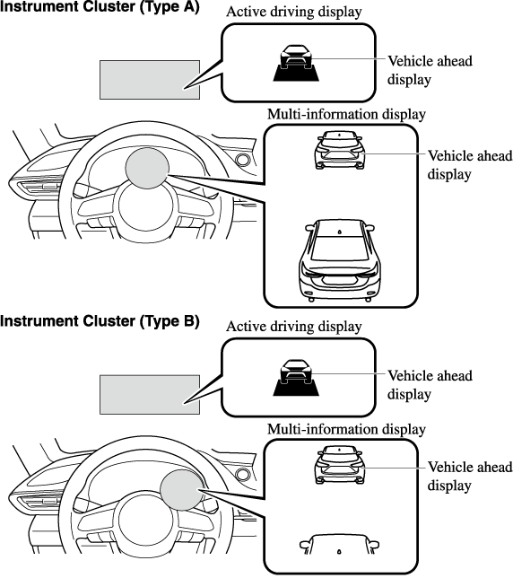 The DRSS operation status is indicated in the active driving display or multi-information display. Regarding malfunctions, check the vehicle conditions or have it inspected by an Authorized Mazda Dealer according to the content of the displayed message.