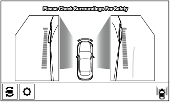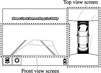 Displays the image of the area around the vehicle and the rear of the vehicle.
