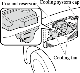 If the cooling fan does not operate while the engine is running, the engine temperature will increase. Stop the engine and call an Authorized Mazda Dealer.
