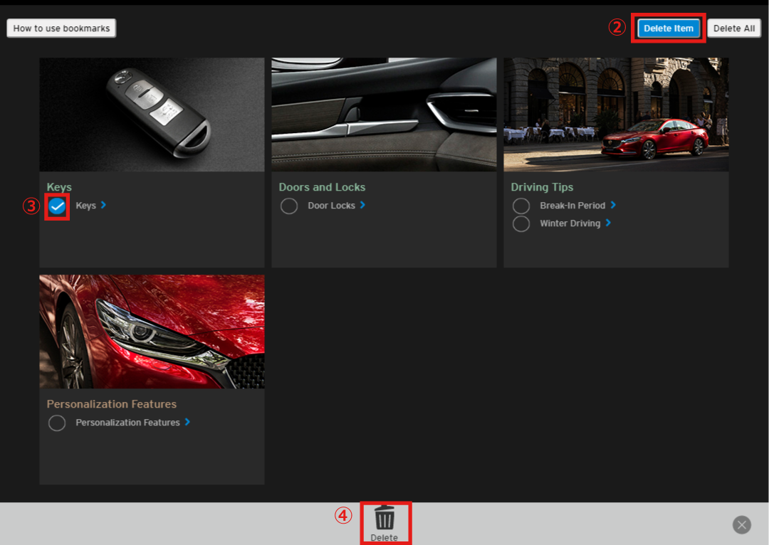 | Search by Theme | You can search for the information you need by selecting the scenario in which the vehicle is being driven. |