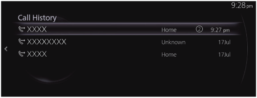 Select the contact or telephone number you want to call from the displayed call history to make a call.