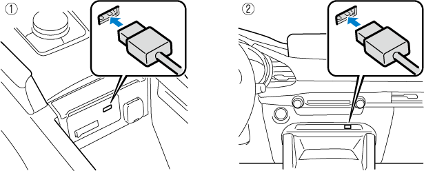 Insert an Apple®-genuine connector cord into the USB port and connect the iPhone®. Insert or pull out the plug with the plug perpendicular to the USB port.