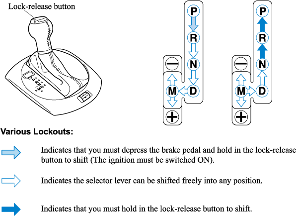 The Sport AT has an option that is not included in the traditional automatic transmission that gives the driver the option of selecting each gear instead of leaving it to the transmission to shift gears. Even if you intend to use the automatic transmission functions as a traditional automatic, you should also be aware that you can inadvertently shift into manual shift mode and an inappropriate gear may be retained as the vehicle speed increases. If you notice the engine speed going higher or hear the engine racing, confirm you have not accidentally slipped into manual shift mode (Search).