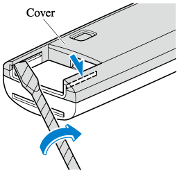 Twist a tape-wrapped flathead screwdriver in the direction of the arrow and open the cover slightly.