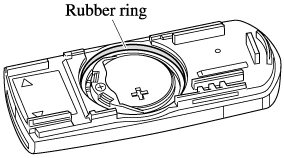 If the rubber ring detaches, reattach it before inserting a new battery.