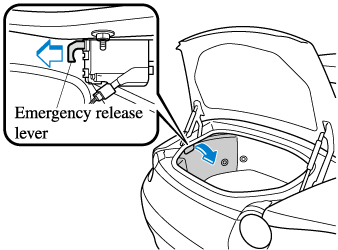 Partially peel back the cover inside the trunk, then pull the emergency release lever.