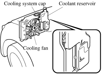 If the cooling fan does not operate while the engine is running, the engine temperature will increase. Stop the engine and call an Authorized Mazda Dealer.