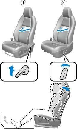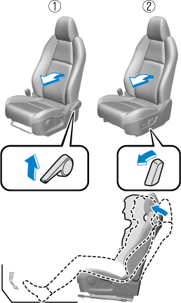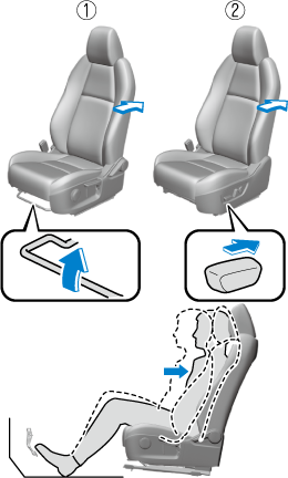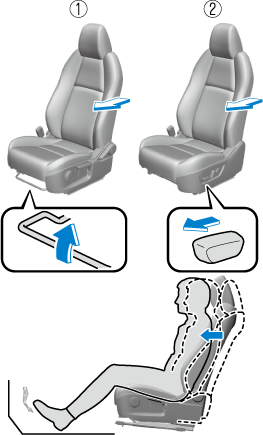 2. Move the seatback backward to a comfortable seated posture without any feeling of cramping in your waist.