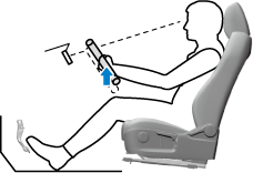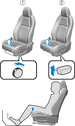 1. With your right foot set on the accelerator pedal, adjust the height on the front edge of the seat bottom so that the back of your knees lightly contacts the front edge of the seat bottom.