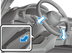 Lower the lever, move the steering wheel to the lowest position, and then push it down and all the way back.