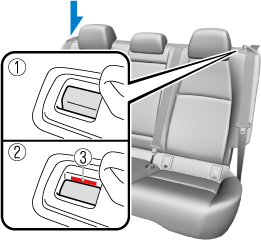 If the red indication is visible behind the push knob, it means the seatback is not locked. If the vehicle is driven without the seatback locked, it could fold down suddenly and cause an accident.