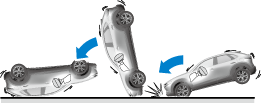 The following illustration is an example of an accident that may not be detected as a roll-over accident. Therefore, the front seat belt pretensioners and curtain air bags may not deploy.
