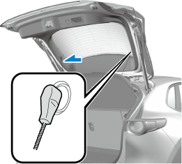 The luggage compartment can be accessed by opening the liftgate when the straps are attached to the sides of the liftgate.