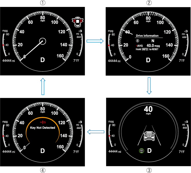 The type of display for the fuel economy and the maximum driving distance can be changed.