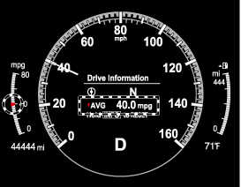 The average fuel economy is calculated every 30 seconds from the total traveled distance on the trip meter and the total fuel consumption, and the average fuel economy for either drive information display is displayed.