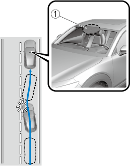 The LDWS alerts the driver that the vehicle may be deviating from its lane. The system detects the white (yellow) lines on the traffic lane using the forward sensing camera (FSC) and if it determines that the vehicle might be deviating from its lane, it notifies the driver by the LDWS.