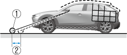 If there is a steep up or down grade in the road at the front or rear of the vehicle, obstructions picked up by the camera can appear farther or closer than the actual distance from the vehicle.