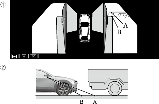If the vehicle is on a slope, obstructions taken by the camera can appear farther or closer than the actual distance from the vehicle.
