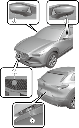 Your vehicle is equipped with a front camera, side cameras, and a rear camera. The 360°View Monitor uses each camera.